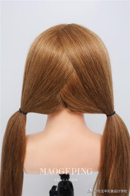 步驟一:頭髮分為左右兩邊,紮成雙馬尾,中間的分路不要太分明。