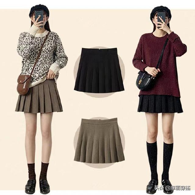 短款的百褶裙滿滿的少女感,搭配小豹紋的毛衣,有點小小的野性,又不失可愛氣息,輕鬆打造舒適休閑風。黑色的百褶裙,更顯瘦,葡萄紫的毛衣,增添了雅緻大氣。