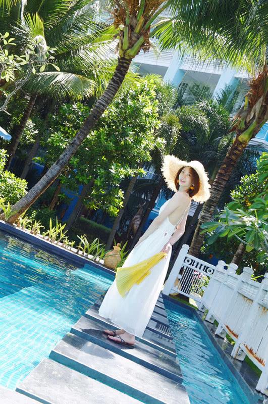 去海邊旅遊,穿什麼才會讓自己的照片拍出來特別美?只見苗苗身穿白色的弔帶裙,然後戴上一頂卡其色的圓禮帽,清新文藝范盡顯,同時也襯得苗苗的氣色相當不錯,美得很呢。