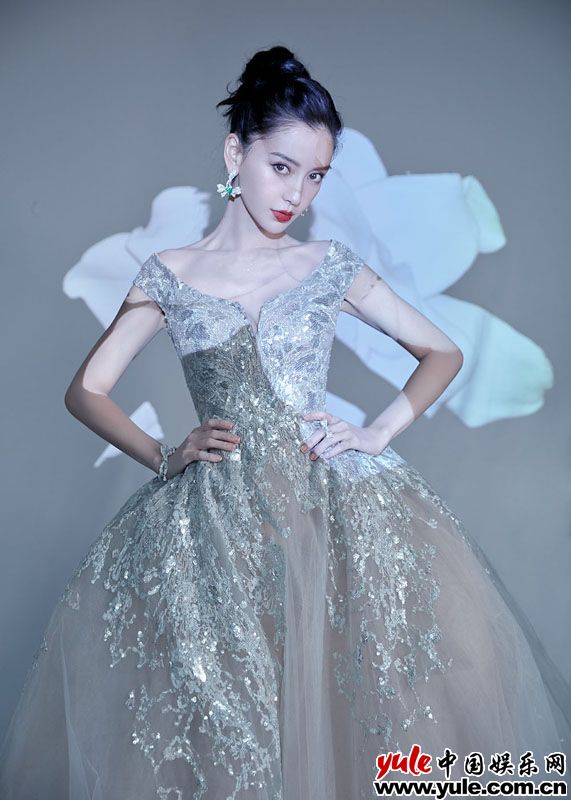 當晚,Angelababy霧色流星裙造型釋出,大片以繁花光影為靈感,在花影里baby彷彿在與林間鮮花擁抱。裙身上綴滿的亮片璀璨在動作間反射出靈動的光芒,羽翼般的一字肩帶設計展現baby的傲人身材,性感高級。