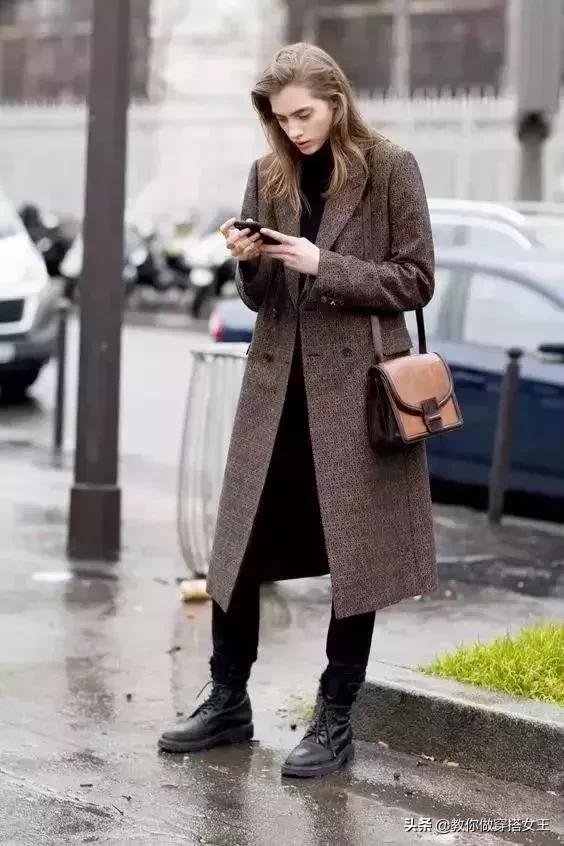 除了平底鞋以外,兩三厘米的粗跟短靴和風衣搭配也不錯,它們都屬於自帶造型感的單品,兩者組合在一起會使得氣場翻倍,時尚有態度。