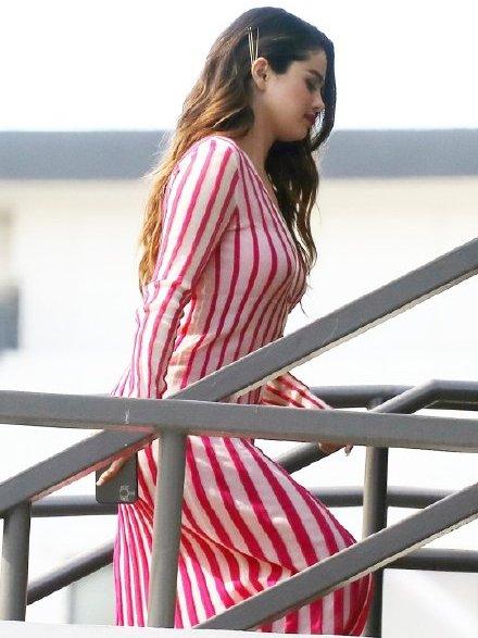 賽琳娜戈麥斯做客SiriusXM電台節目,為兩首新歌跑宣傳,一身紅白條紋長裙氣質大開啊,我很少見歐美的女明星穿這麼粉嫩的裙子,因為歐美明星都是膚色比較偏黑的,由於審美不一樣,所以她們不追求白才是美,特別是又不少人還特意晒成小麥膚色,賽琳娜就是比較偏黃的皮膚,穿這種粉紅色裙子還能有氣質真的是不容易。